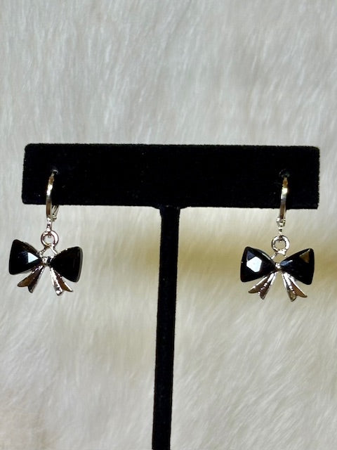 Add a touch of whimsy to your look with these playful silver bow earrings, featuring charming black stone accents that catch the light beautifully. Perfect for adding a fun, stylish twist to any outfit.