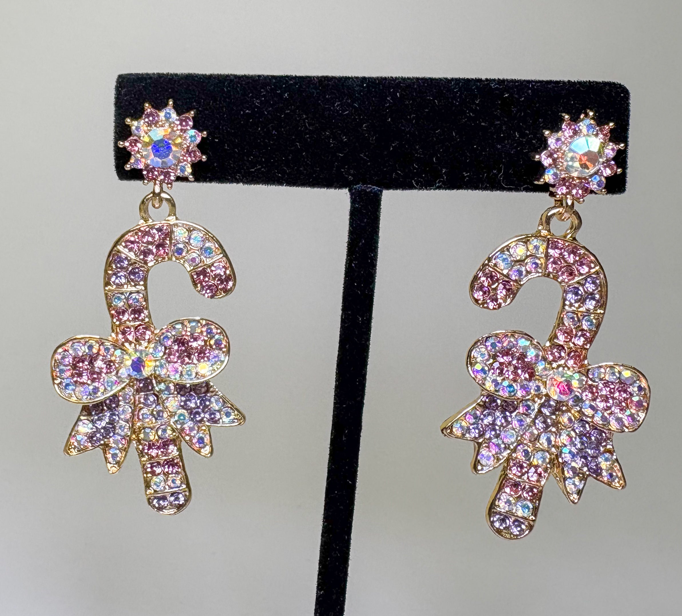 Pastel Rhinestone Candy Cane Earrings