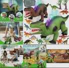 Dinosaurs with miniature Dino friends. Lights-up, walking movement with LED lights.