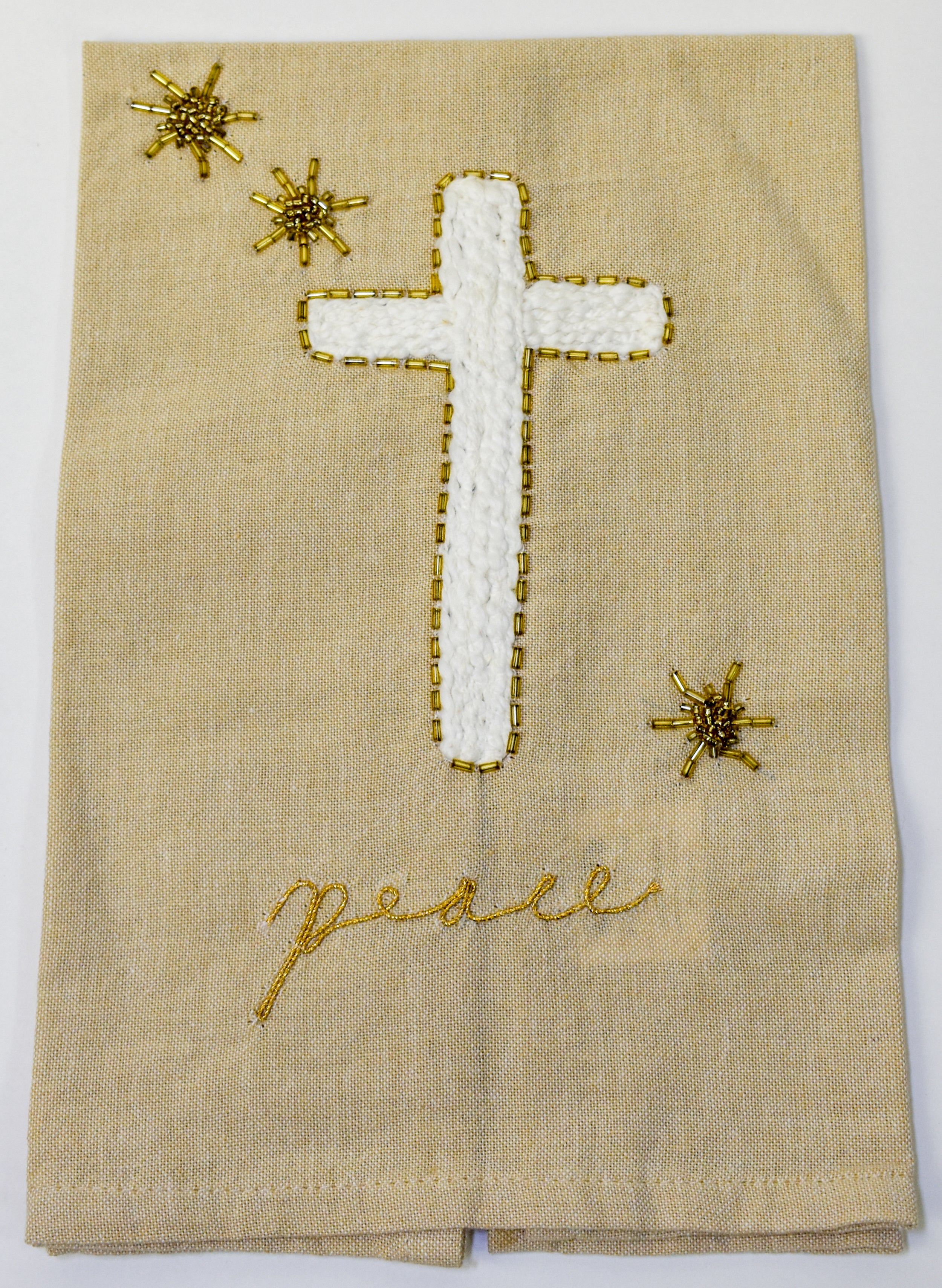 Add a touch of charm to your space with the Mud Pie Embroidered Cross Towel. This cozy cotton hand towel features shimmering gold lurex embroidery and a delicate beaded icon, making it both stylish and soft to the touch. Measuring 21" x 14", it’s perfect for brightening up your bathroom or kitchen while serving everyday needs with a playful sparkle.