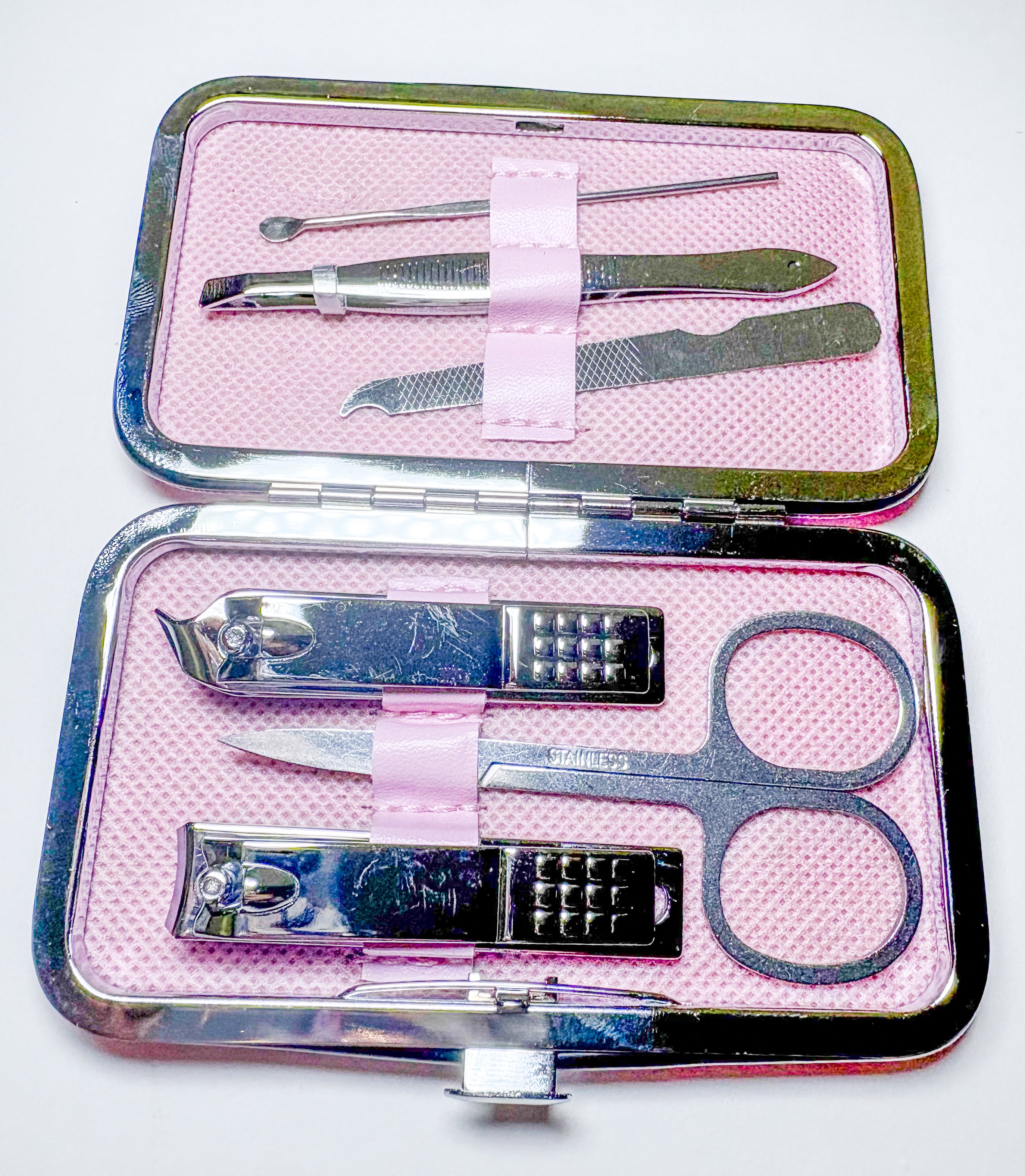 Keep your nails on point wherever you go with this fun 7-piece manicure set! Packed in a stylish, patterned case that snaps shut tight, it’s perfect for your purse or travel bag. Inside, you’ll find all the essentials—nail clippers, cuticle scissors, tweezers, nail file, and more—all made from durable stainless steel. Choose from four chic designs to match your vibe or gift it to a friend who loves a little self-care sparkle. Nail care just got a whole lot cuter and easier!