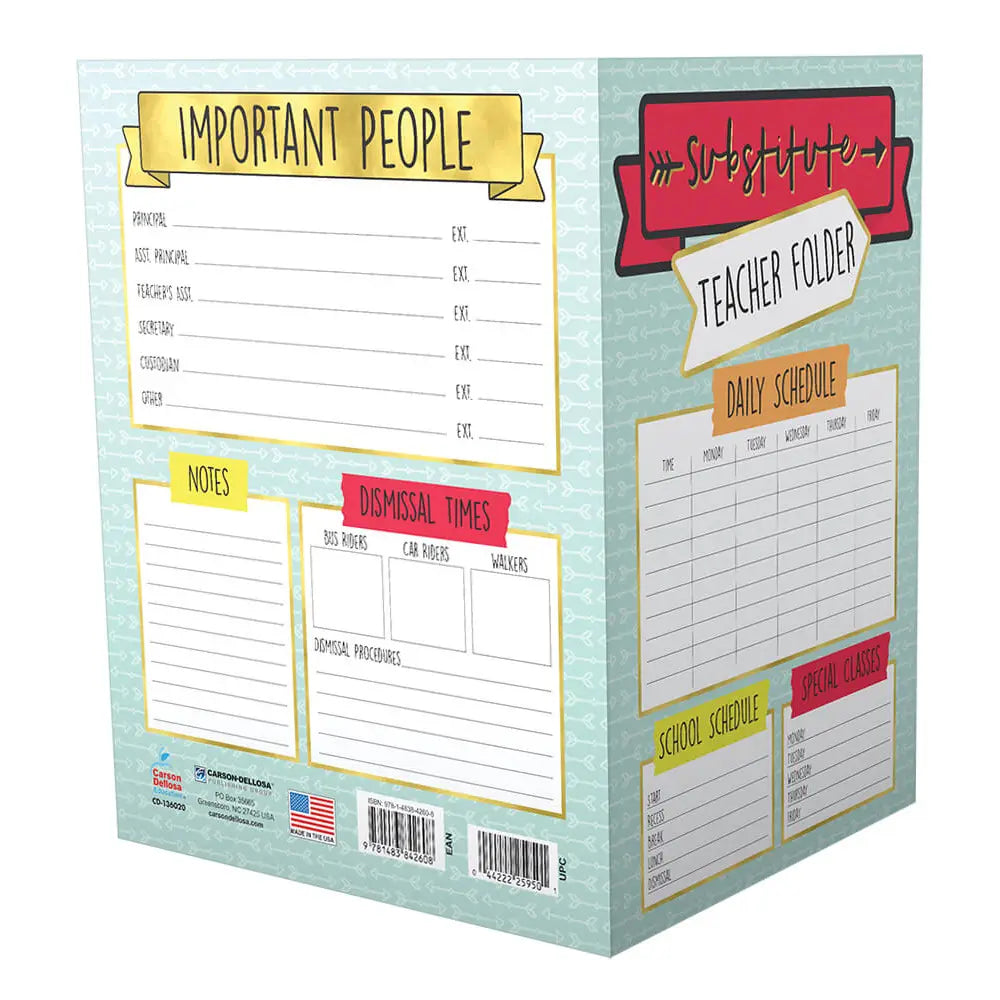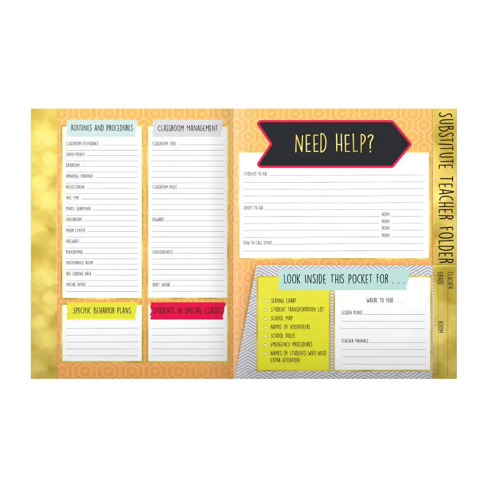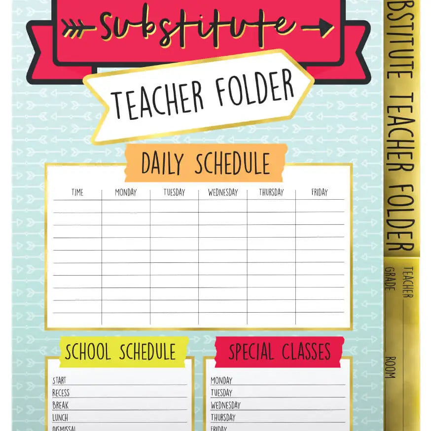 Get ready to ace your substitute days with the Aim High Substitute Teacher Folder! This fun and functional folder keeps your daily schedule, contact info, and classroom procedures all in one neat spot. Its clean design makes organizing a breeze, while the sturdy pocket holds all the extras a substitute might need. Say goodbye to last-minute scrambling and hello to confidence and calm every time you step into the classroom!