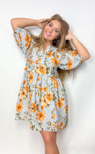 This playful striped floral dress features a charming tiered skirt that adds movement and fun to every step. The pleated bodice detail brings a touch of texture and elegance, making it perfect for sunny days and lively gatherings. Embrace effortless style with this delightful dress that combines vibrant patterns and flirty design.
