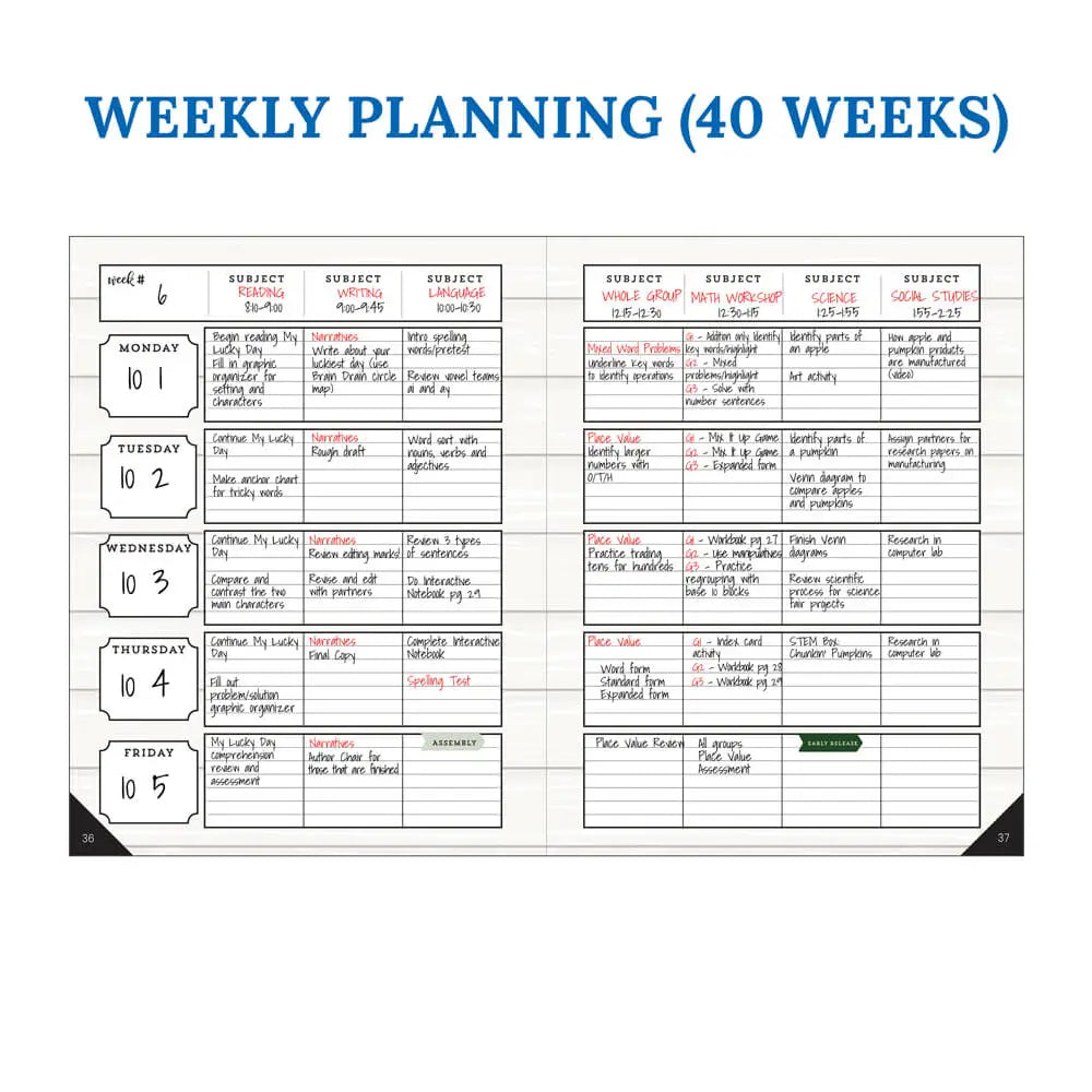 Keep your classroom running smoothly all year with the Farmhouse Teacher Planner! This 128-page, undated 8” x 11” planner is packed with 116 fun stickers to help you organize schedules, lesson plans, and curriculum with ease. Track grades, attendance, and homework using handy checklists in daily, weekly, and monthly views. Plus, a special section lets you record important info for substitutes. Brighten your farmhouse classroom management with this playful and practical planner designed to keep you on top of every learning moment!
