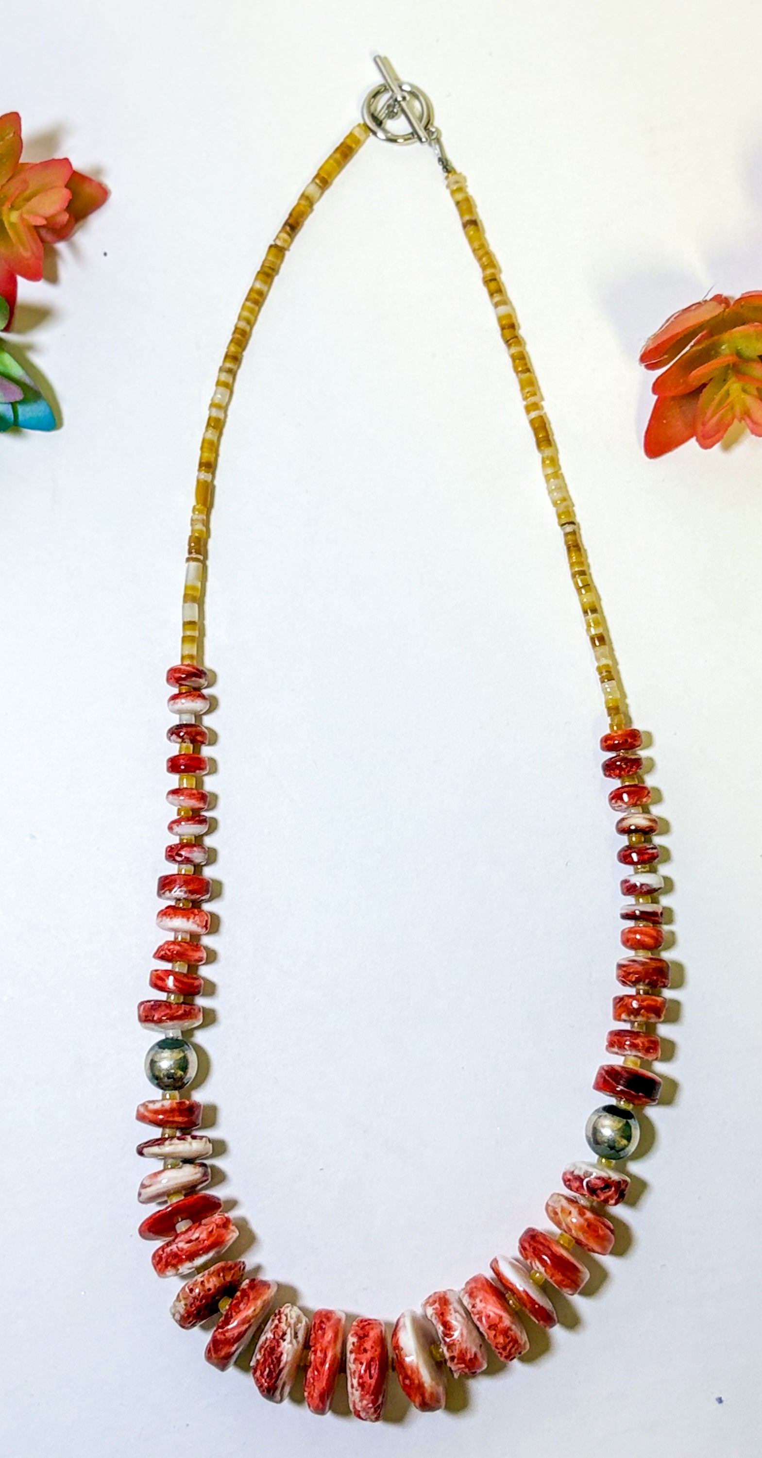 Add a splash of vibrant charm with this playful 22-inch necklace featuring 2 mm natural shell pearls and bright orange spiny rondelle beads. Each hoop is crafted from tarnish-resistant sterling silver, ensuring it stays shiny and lively. The graduated shapes and colors make every necklace one-of-a-kind—just like you!