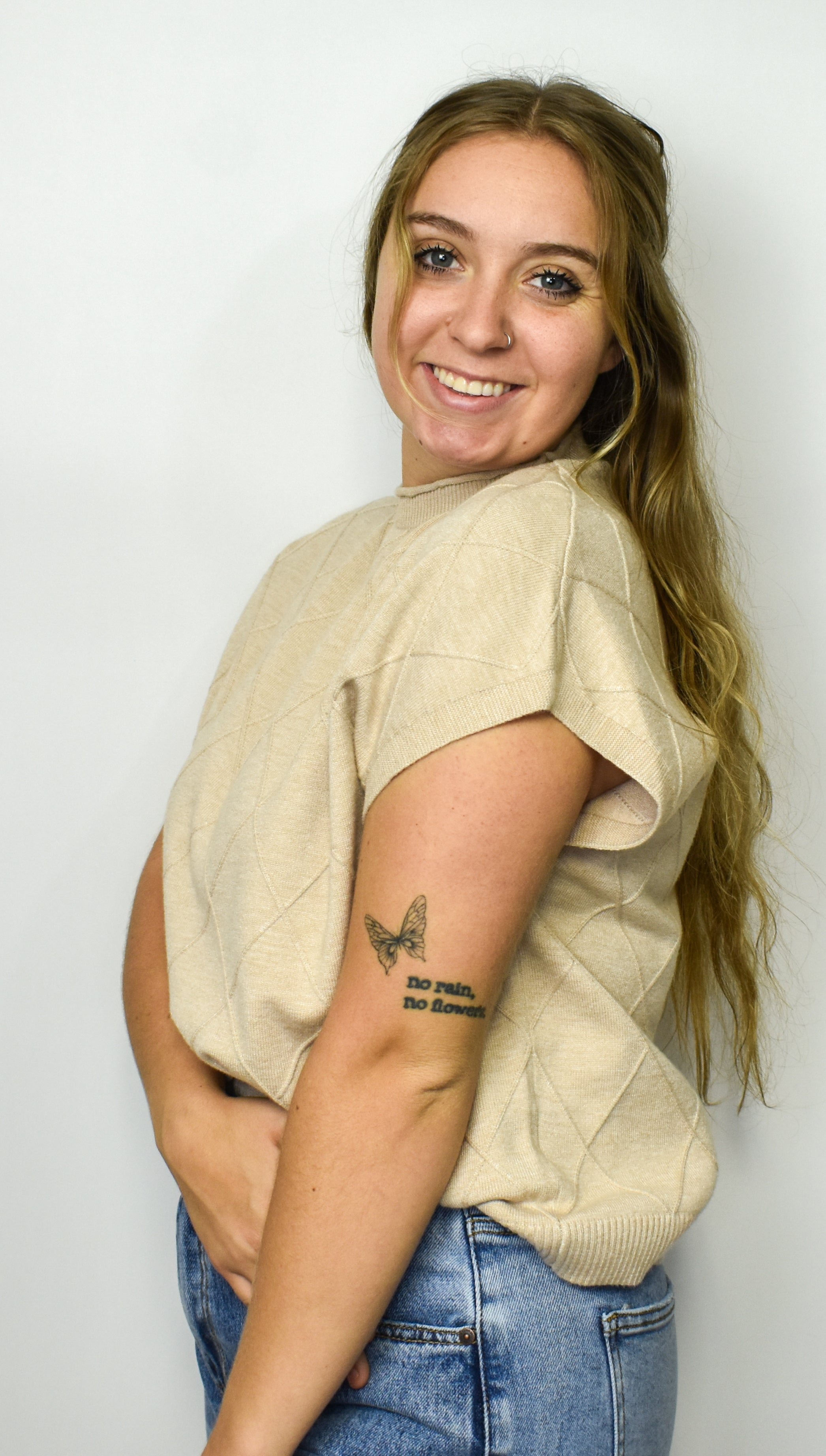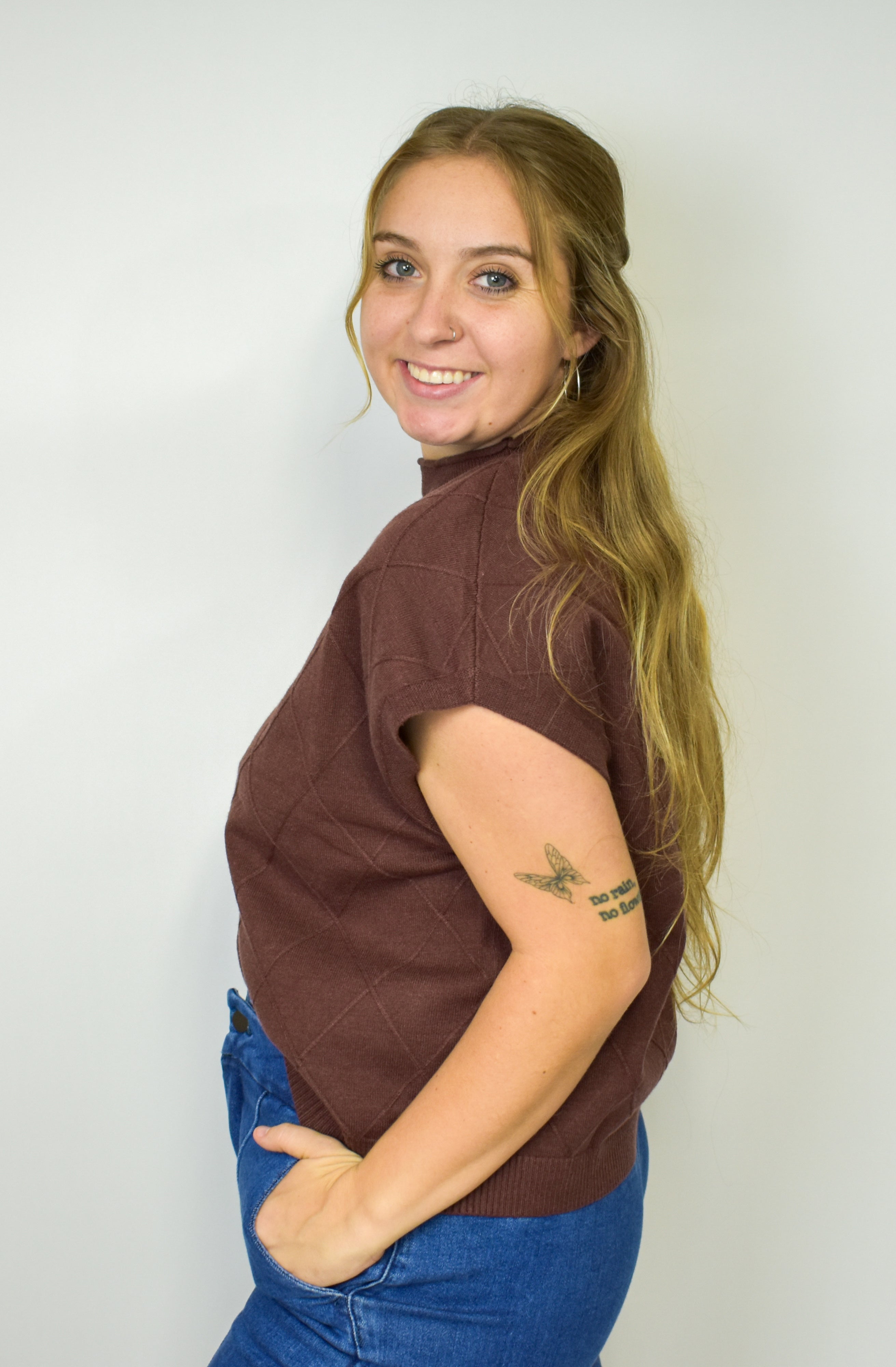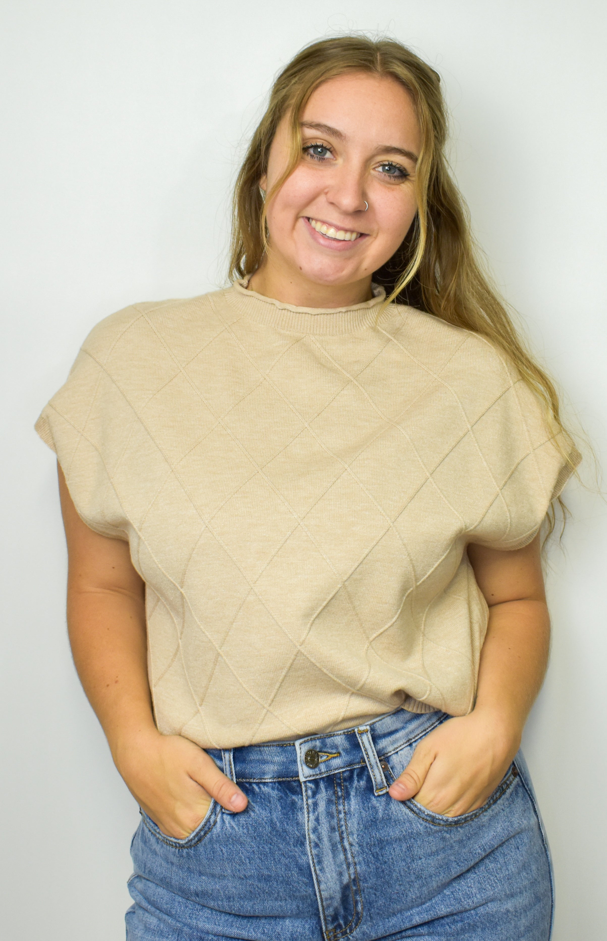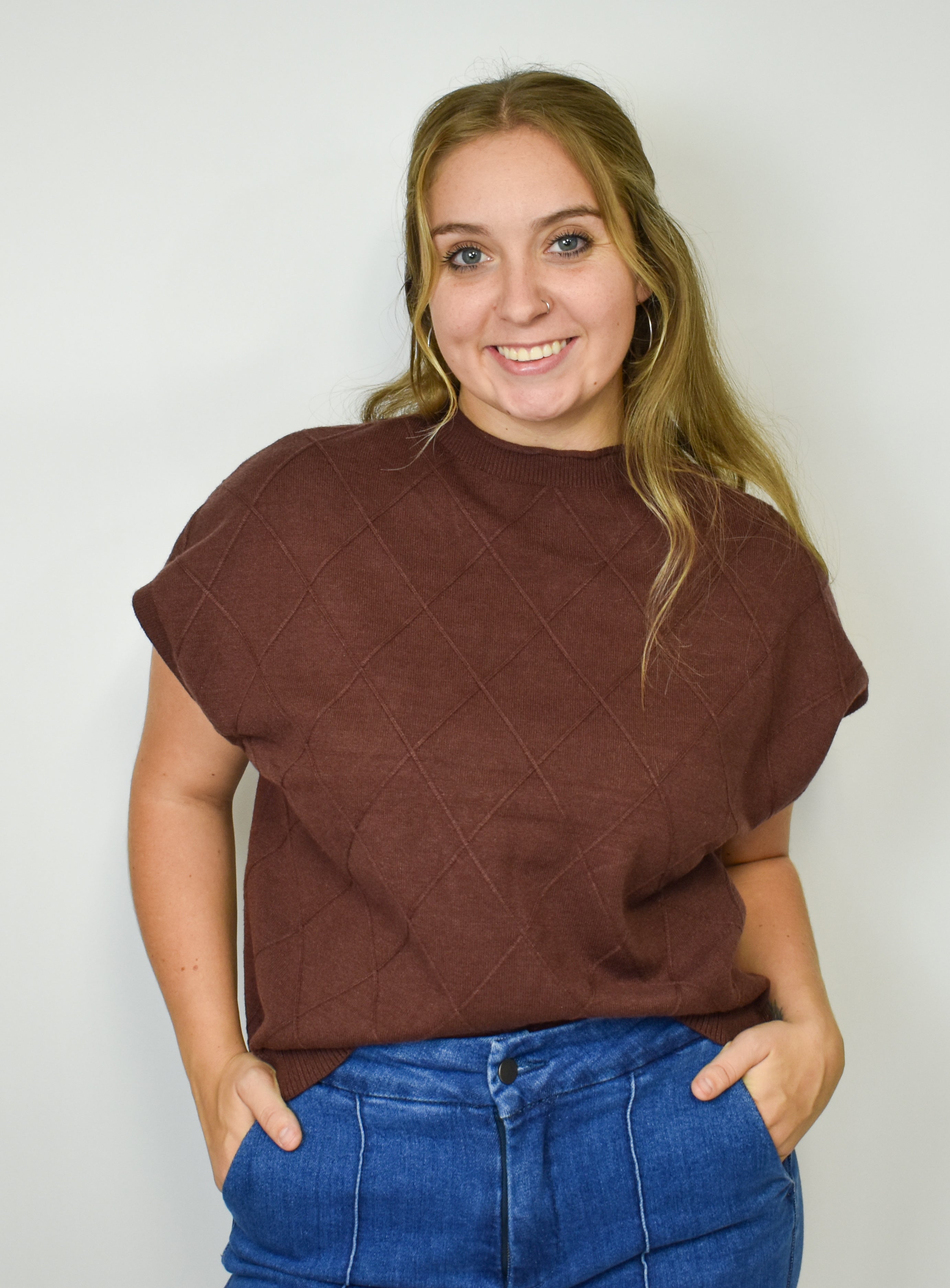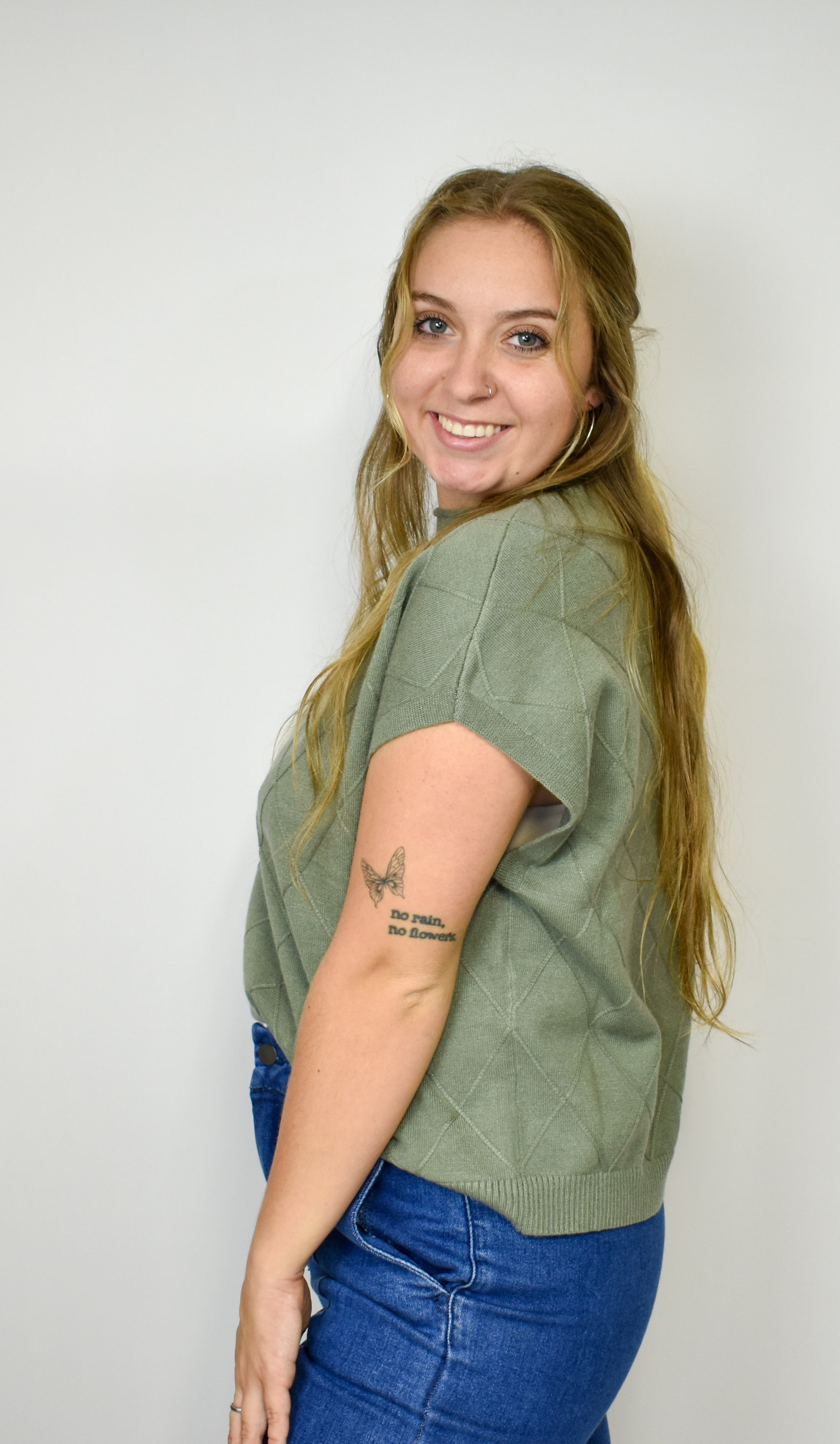 Elevate your style with The Allison Sweater Vest. The drop shoulder design and mock neck provide a modern touch, while the variety of colors, including chestnut, olive, and taupe, allows for versatile wardrobe options. Stay warm and on-trend with this must-have sweater vest.
