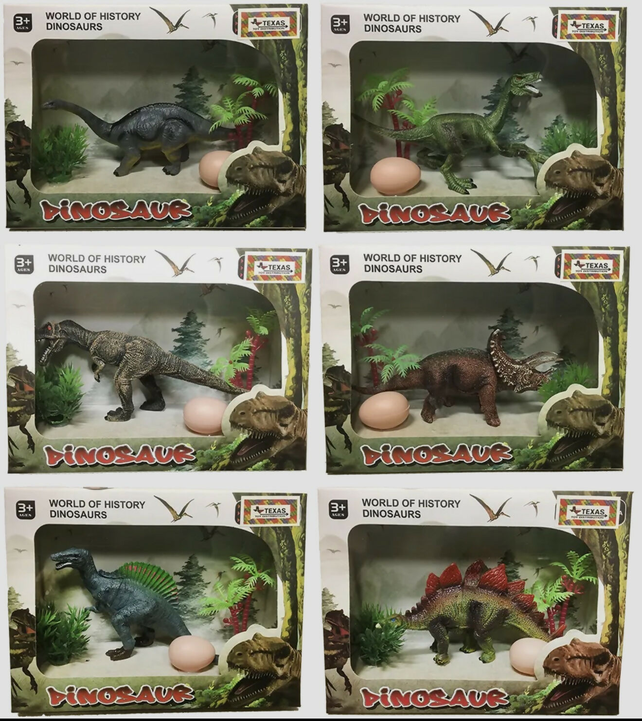 • Brontosaur, Spinosaur, Stegosaur, T-Rex, Triceratops,Velociraptor.