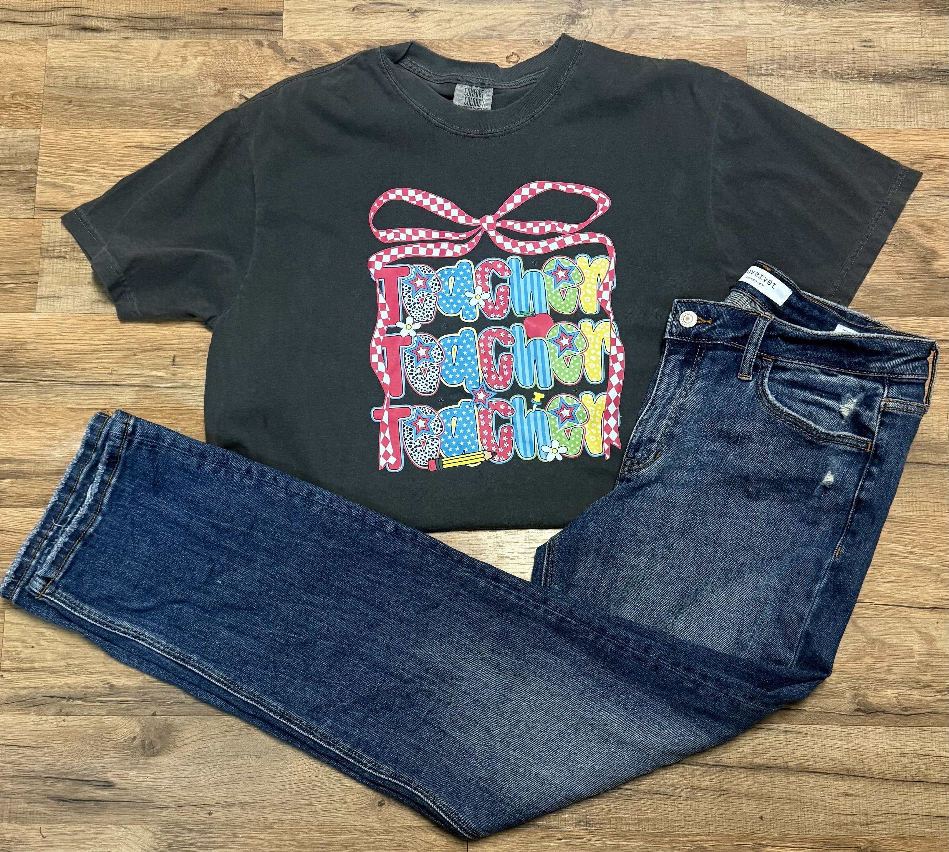 Teacher graphic tee is perfect to wear with jeans on your causal school day.