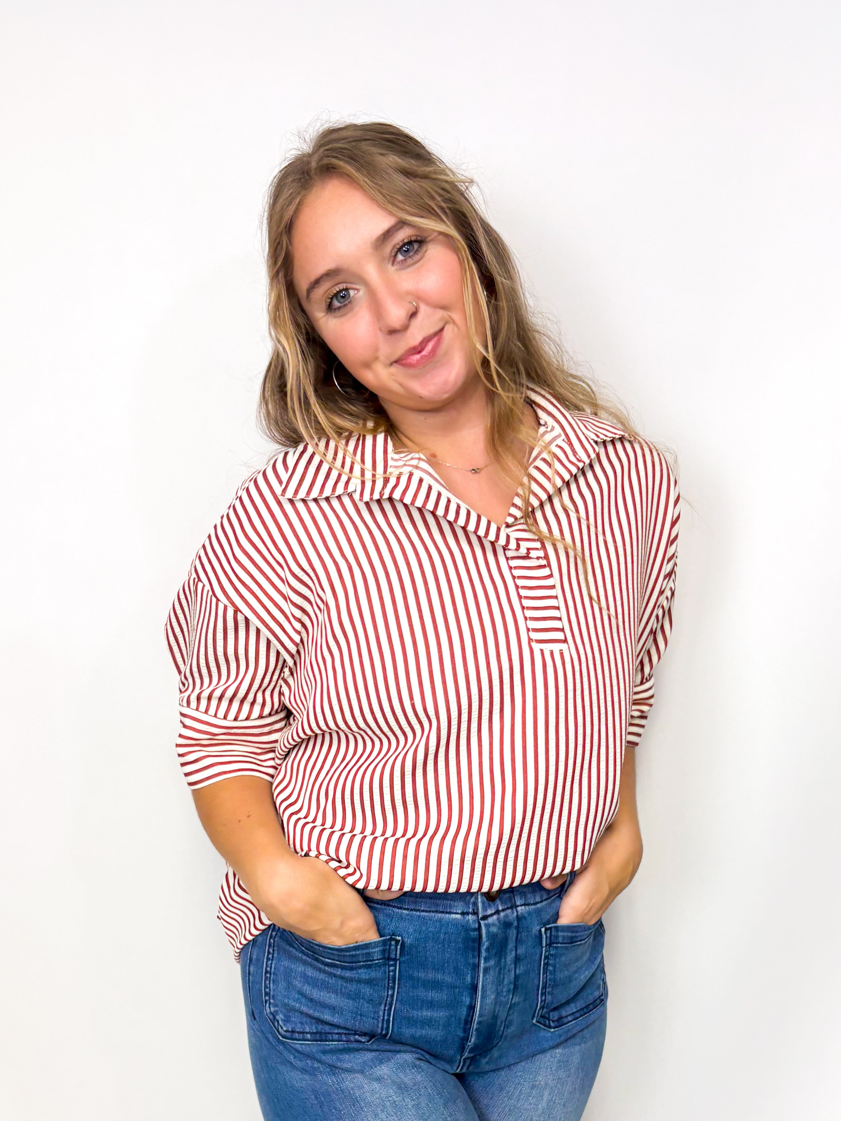 The Cassie Striped Oversized Top combines bold stripes with contrasting pattern directions for a fun, eye-catching look. Perfectly roomy for comfort, it’s a versatile choice that transitions effortlessly from workdays to weekend adventures. Embrace playful style without sacrificing ease!