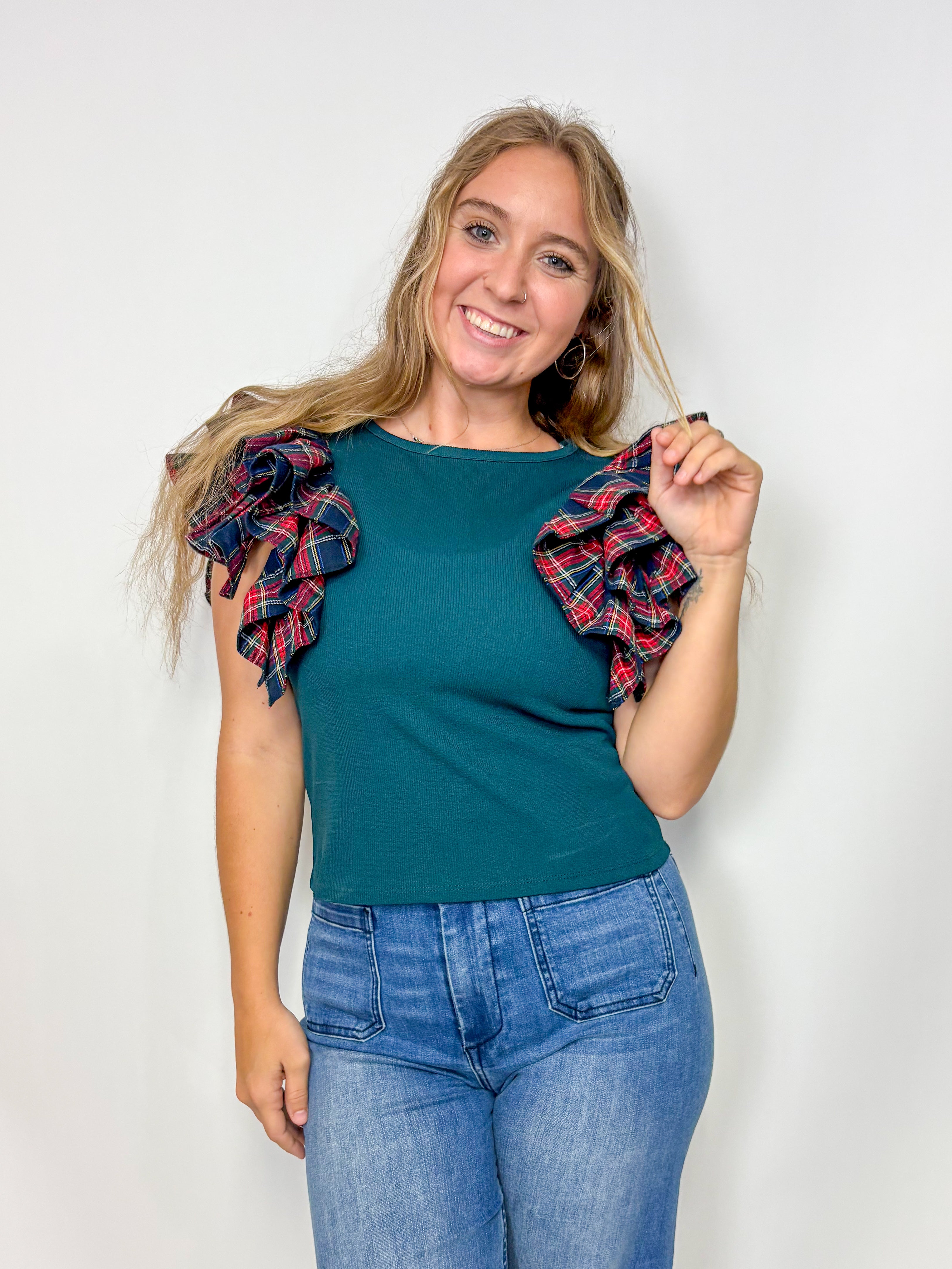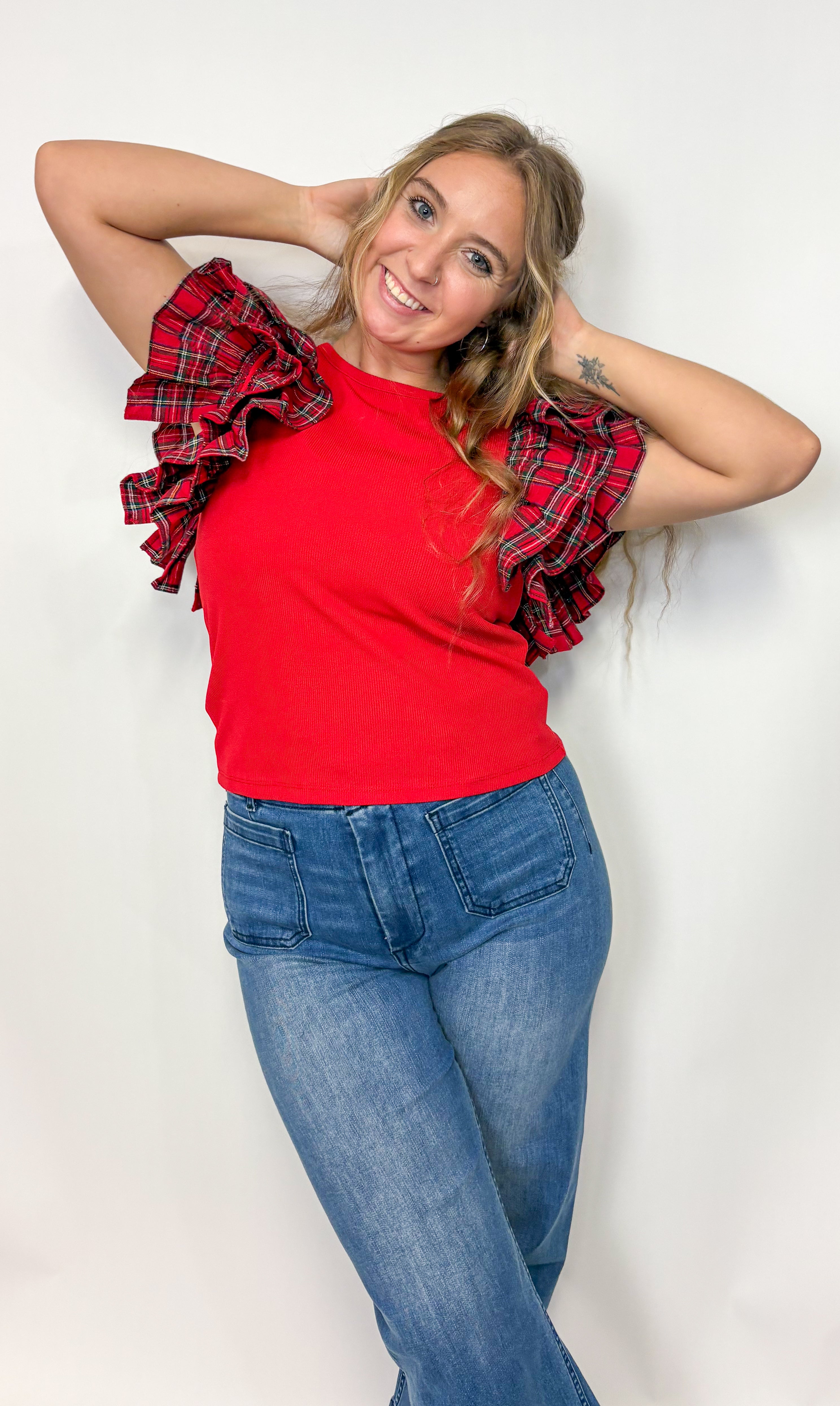 Get ready to sparkle at every holiday gathering with this playful Christmas Calling Ruffle Sleeve Top. Its flirty ruffle sleeves add a festive flair, making it perfect for parties or any joyful occasion. Celebrate in style and let your fun side shine!