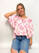 Add a splash of Parisian charm to your wardrobe with the Paxton Pink Tie Front Top. This playful blouse features breezy batwing sleeves and a flirty front tie, perfect for twirling through your day with effortless style and comfort.