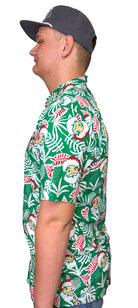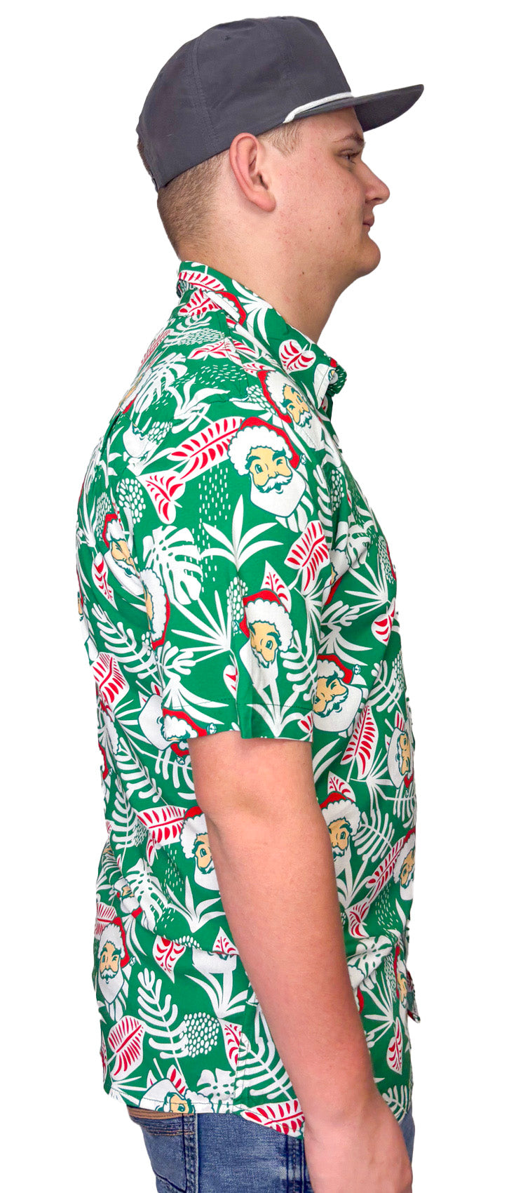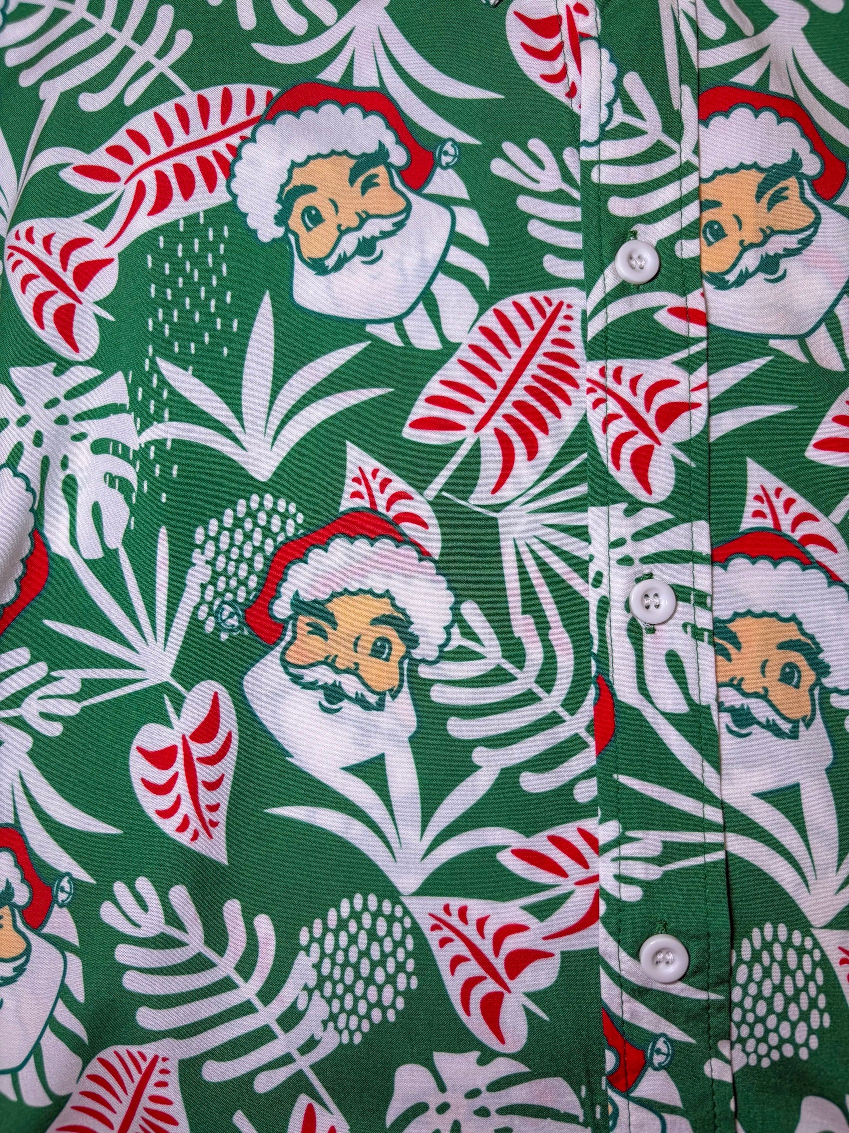 Bring a festive twist to your holiday wardrobe with the Santa Palms Button Down Shirt. This playful Christmas Hawaiian shirt features Santa relaxing among tropical palms, blending classic cheer with island vibes. Made to keep you cool and comfortable while turning heads at every party. Get ready to stand out—once you wear these lively leaves, you won’t want the festivities to end.