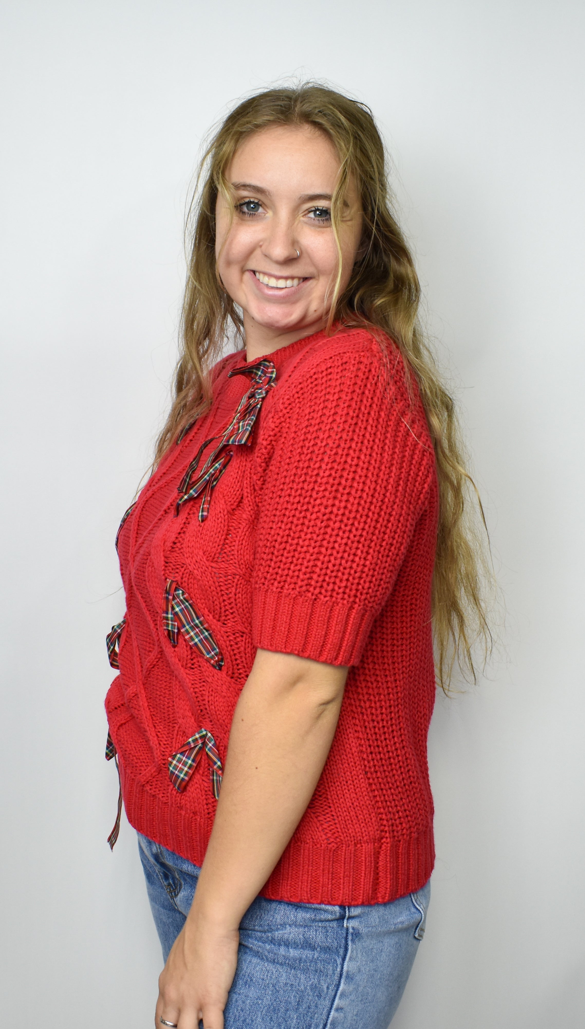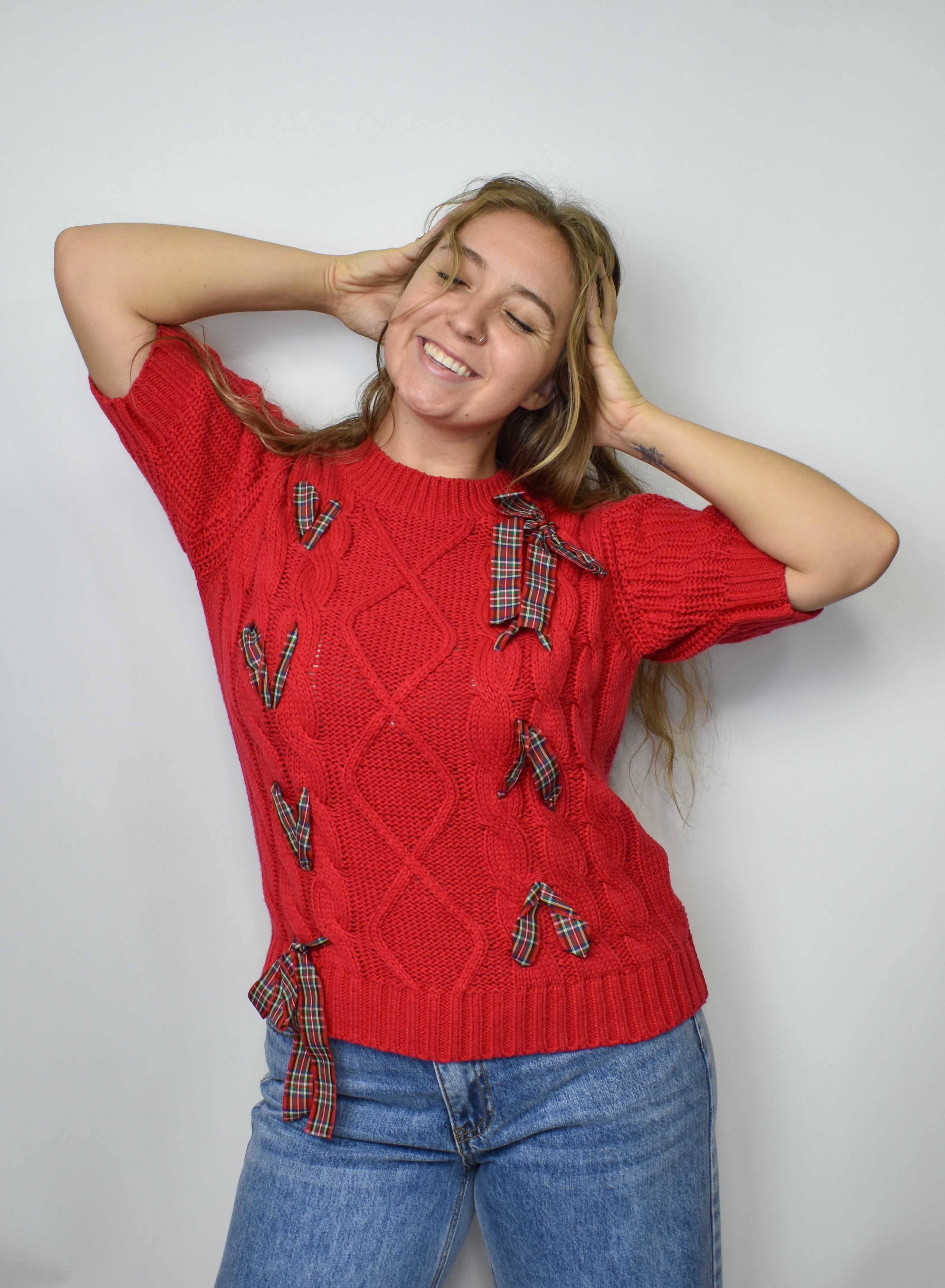The Cable Knit Plaid Bow Sweater combines classic craftsmanship with refined detail. Featuring a textured cable knit design, this sweater delivers both warmth and sophisticated style. Its standout element is the plaid bow detail, adding a touch of elegance and visual interest to a timeless silhouette. Ideal for layering or wearing on its own, this sweater offers a polished yet cozy look suitable for various occasions.