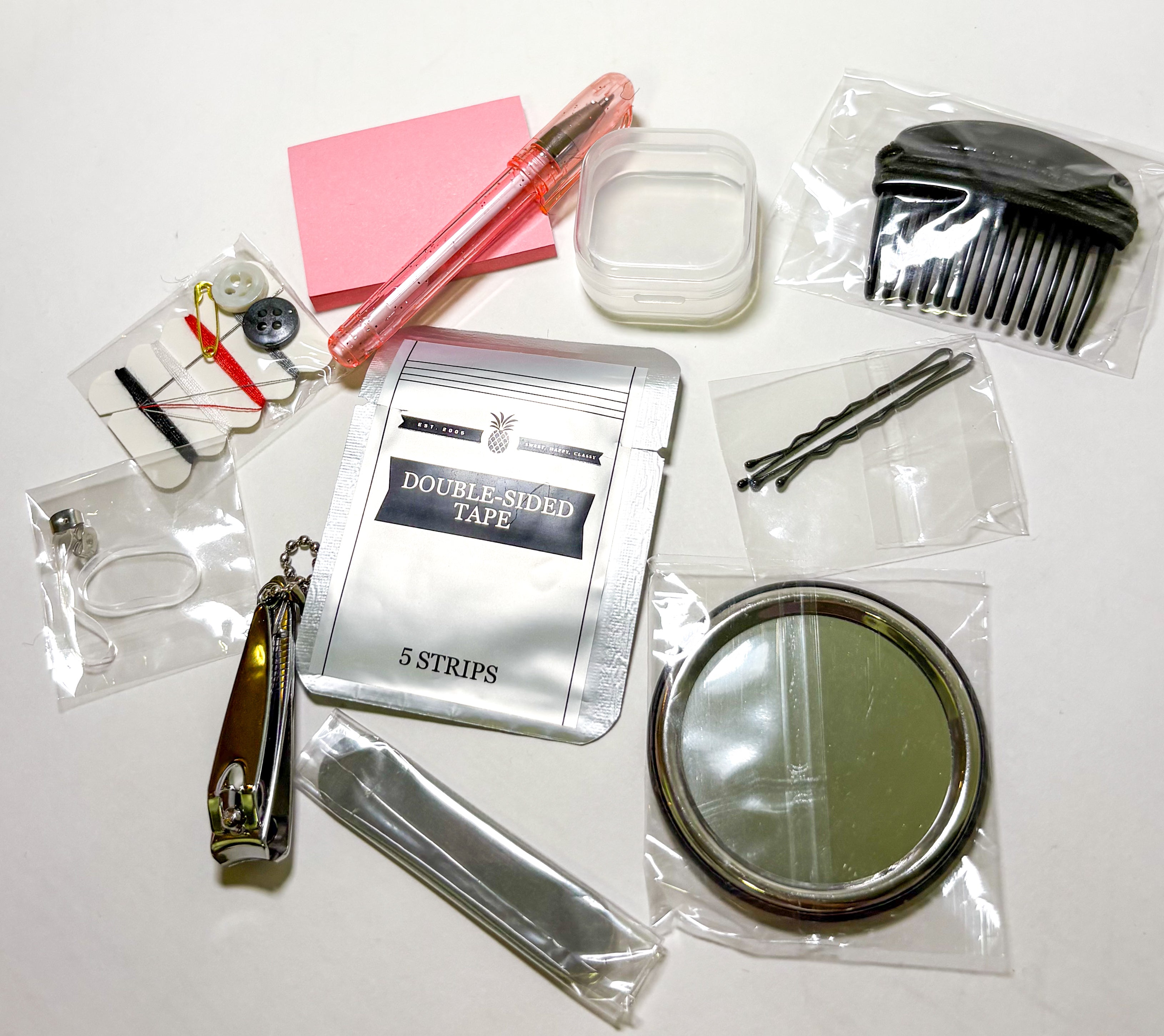 The Emergency Kit is your fun and handy lifesaver, packed with all the essentials every girl needs! From a compact mirror and sewing kit to hair ties, extra buttons, and a mini pen, this playful carry bag keeps you ready for anything. Tuck in nail files, safety pins, bobby pins, a mini comb, nail clippers, earring backs, a pill container, sticky notes, and double-sided tape—all neatly organized to save the day in style. Perfect for those unexpected moments when a little emergency kit can make a big difference!