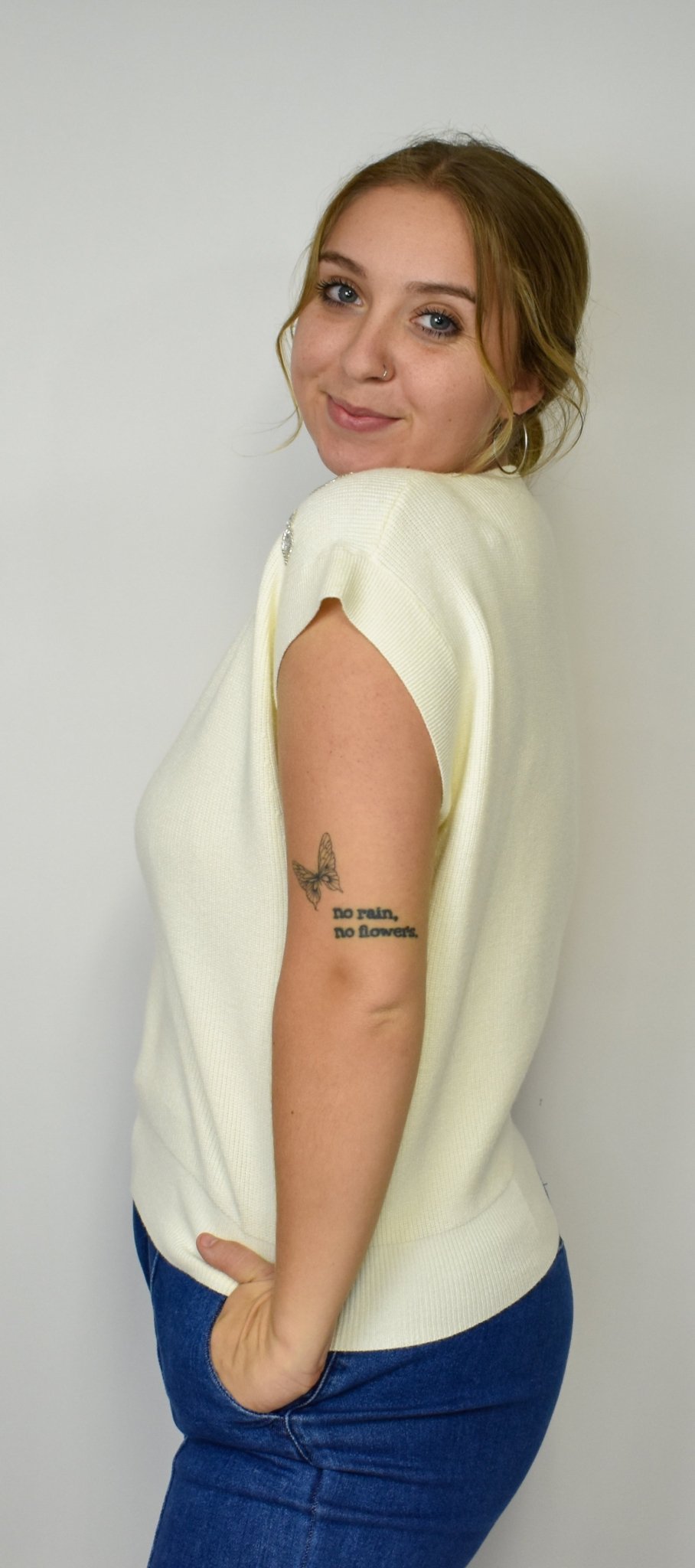 Add a touch of sparkle to your outfit with this playful sweater vest featuring charming sequin bow details in classic black and cream. Crafted from a cozy blend of viscose, polyester, and nylon, it offers softness and stretch for all-day comfort. Perfect for layering or wearing alone, this vest brings a fun, festive vibe to any look.