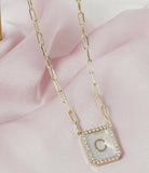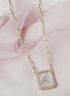 18K Gold Pave Cubic Zirconia Initial & Pearl Necklace.